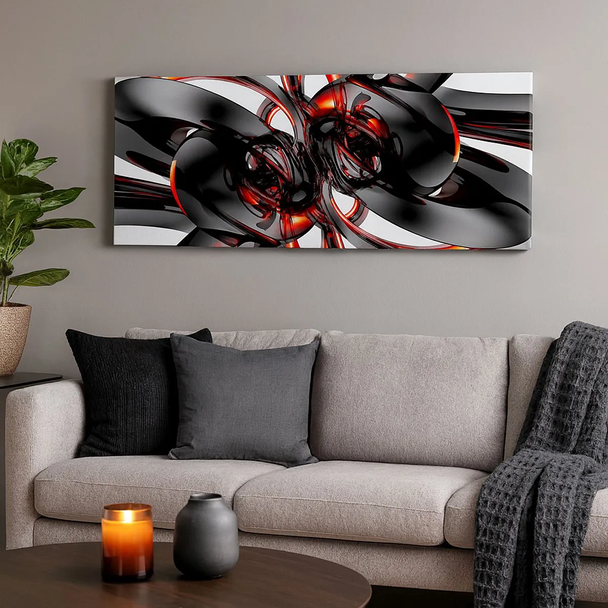 Impression sur toile - Image sur toile - Graphiques 3D abstraits avec des éléments noirs et rouges - 160x50cm - Mouvement de graphite et rouge - Décoration murale moderne pour le salon et la chambre ARTTOR
