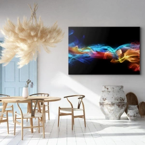 Impression sur toile - Image sur toile - Fumée colorée sur fond noir - 120x50cm - Danse arc-en-ciel du brouillard - Décoration murale moderne pour le salon et la chambre ARTTOR