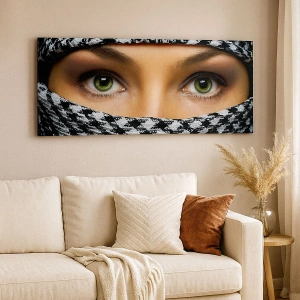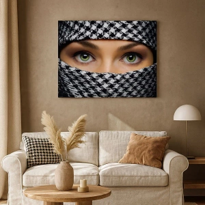 Impression sur toile - Image sur toile - Un portrait d'une beauté voilée aux yeux verts - 30x30 cm