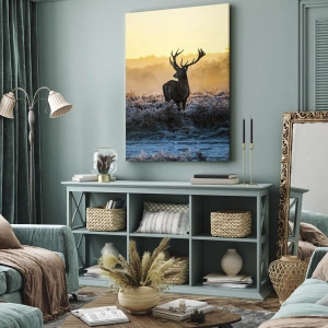 Impression sur toile - Image sur toile - Un cerf dans une clairière gelée au lever du soleil - 160x50cm - Couronné pour sa succession - Décoration murale moderne pour le salon et la chambre ARTTOR