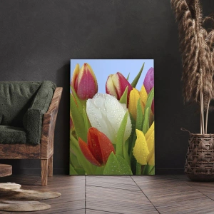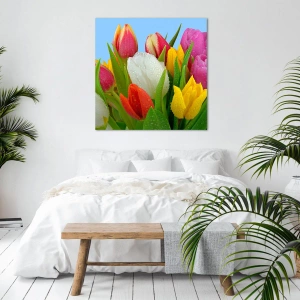 Impression sur toile - Image sur toile - Un arc-en-ciel fleuri en gouttes de rosée - 50x50 cm