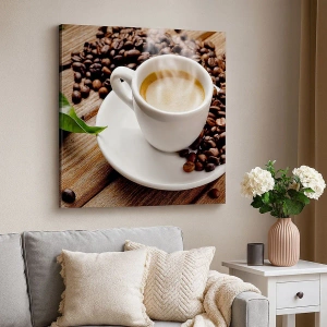Impression sur toile - Image sur toile - Café sur un banc - 60x60 cm