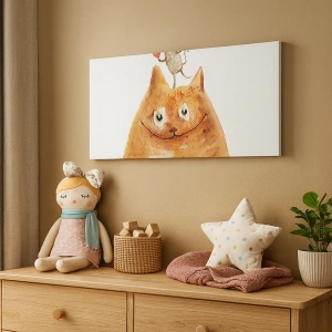 La toile Paradoxes de l'amour représente une scène charmante et humoristique dans laquelle une souris se tient sur la tête d'un chat, tenant un cœur rouge dans ses pattes. Ce motif, peint à l'aquarelle délicate, transmet à la fois la chaleur et le contraste ludique entre les antagonistes naturels, unis dans cette composition par un sentiment d'amitié.