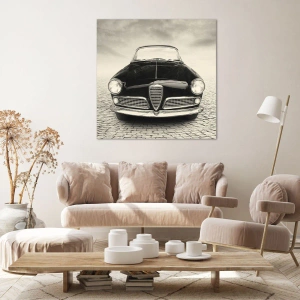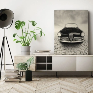 Impression sur toile - Image sur toile - Une voiture classique sur une place pavée dans un style monochrome - 70x50cm - Et alors! Tu ne m'aime pas? - Décoration murale moderne pour le salon et la chambre ARTTOR