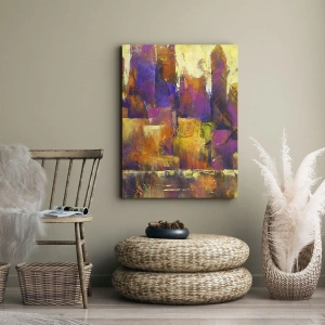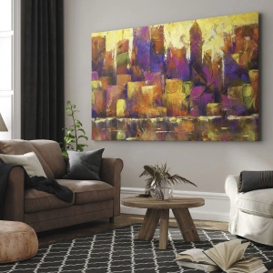 Impression sur toile - Image sur toile - Composition abstraite d'une métropole dans les tons jaune et violet - 120x50cm - Composition métropolitaine - Décoration murale moderne pour le salon et la chambre ARTTOR