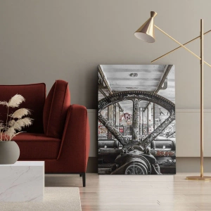 • Hall industriel, machine vintage, graffiti, Autre, Vintage et rétro, Pour le bureau, Pour le bureau, Pour la salle à manger, Pour le hall, Pour le salon, Pour la chambre, Gris, Verticale