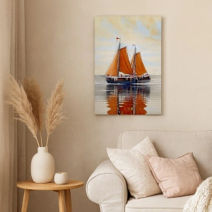 • Ce tableau représente des voiliers à deux mâts sur une eau calme, créant une atmosphère relaxante et apportant une touche de nature. Parfait pour les intérieurs de style nautique.