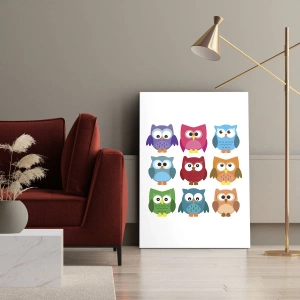 - Ce tableau représente des hiboux colorés dans un style enfantin. Parfait pour décorer une chambre d'enfant, il apportera joie et féérie.