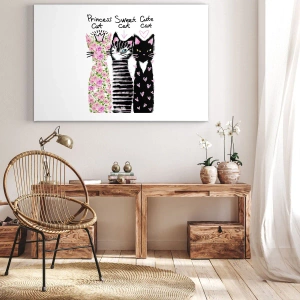 Impression sur toile - Image sur toile - Trois chats aux motifs artistiques variés - 120x80cm - Il y avait trois chats - Décoration murale moderne pour le salon et la chambre ARTTOR