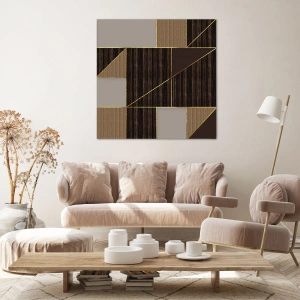 Impression sur toile - Image sur toile - Motifs géométriques dans les tons de marron avec des lignes dorées - 140x50cm - Mozaique de bronze et d'or - Décoration murale moderne pour le salon et la chambre ARTTOR