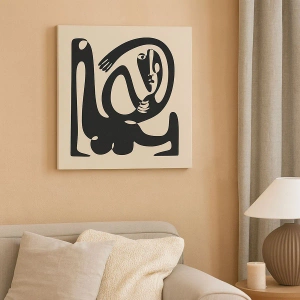 Impression sur toile - Image sur toile - Une figure abstraite en noir sur fond beige - 70x50cm - Presque du Picasso - Décoration murale moderne pour le salon et la chambre ARTTOR