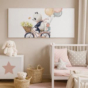 • Pour les enfants, Panda sur un vélo, Abstraction, Pour les enfants, Pastel, Animaux, Pour la chambre des enfants Blanc, Verticale