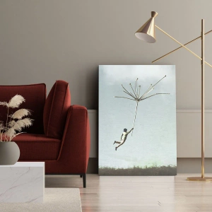 Impression sur toile - Image sur toile - Une silhouette soulevée par une grosse graine de pissenlit - 120x80cm - Cerfs-volants, pissenlits, vent - Décoration murale moderne pour le salon et la chambre ARTTOR