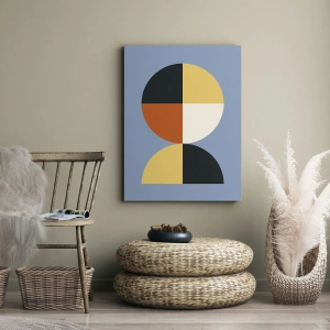 - Une impression sur toile aux motifs géométriques, représentant deux cercles colorés sur fond bleu. Un excellent choix pour les intérieurs modernes qui recherchent une touche distinctive.
