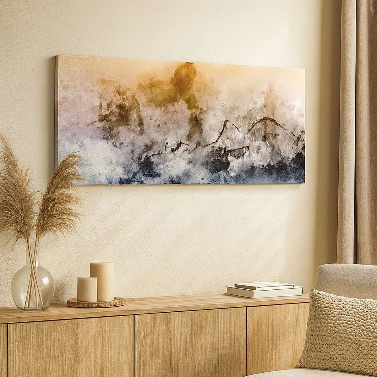 Impression sur toile - Image sur toile - Paysage abstrait avec brouillard et couleurs subtiles - 160x50cm - Noyé dans un nuage de brouillard - Décoration murale moderne pour le salon et la chambre ARTTOR