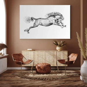 Impression sur toile - Image sur toile - Croquis d'un cheval au galop dynamique sur fond blanc - 160x50cm - Immortalisé au galop - Décoration murale moderne pour le salon et la chambre ARTTOR