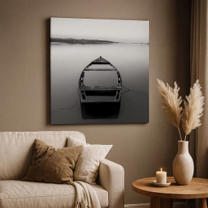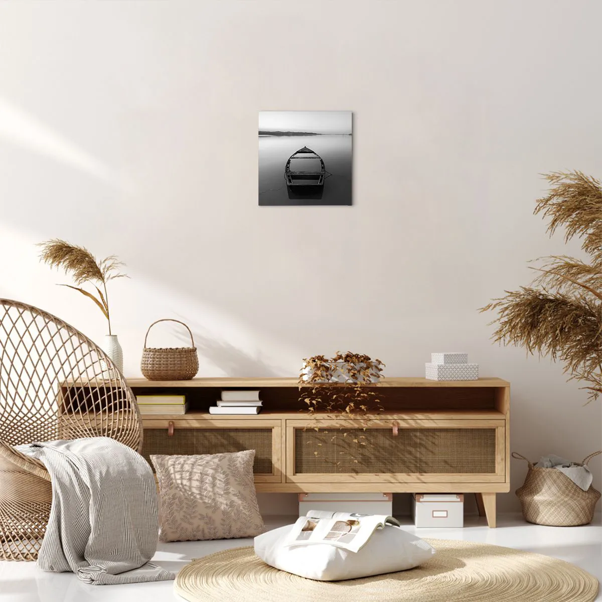 • Paysage, Lac, Bateau, Noir et blanc, Paysages, Nautique, Nature, Voyage, Pour le bureau, Pour le bureau, Pour la salle à manger, Pour la salle de bain, Pour le hall, Pour le salon, Pour la chambre, Gris, Noir et blanc, Carré