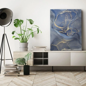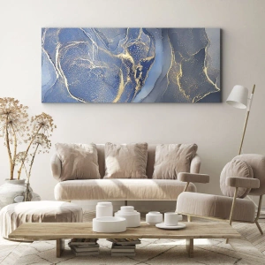 Impression sur toile - Image sur toile - Motifs bleus abstraits avec des accents dorés - 140x50cm - Poussière d'or - Décoration murale moderne pour le salon et la chambre ARTTOR