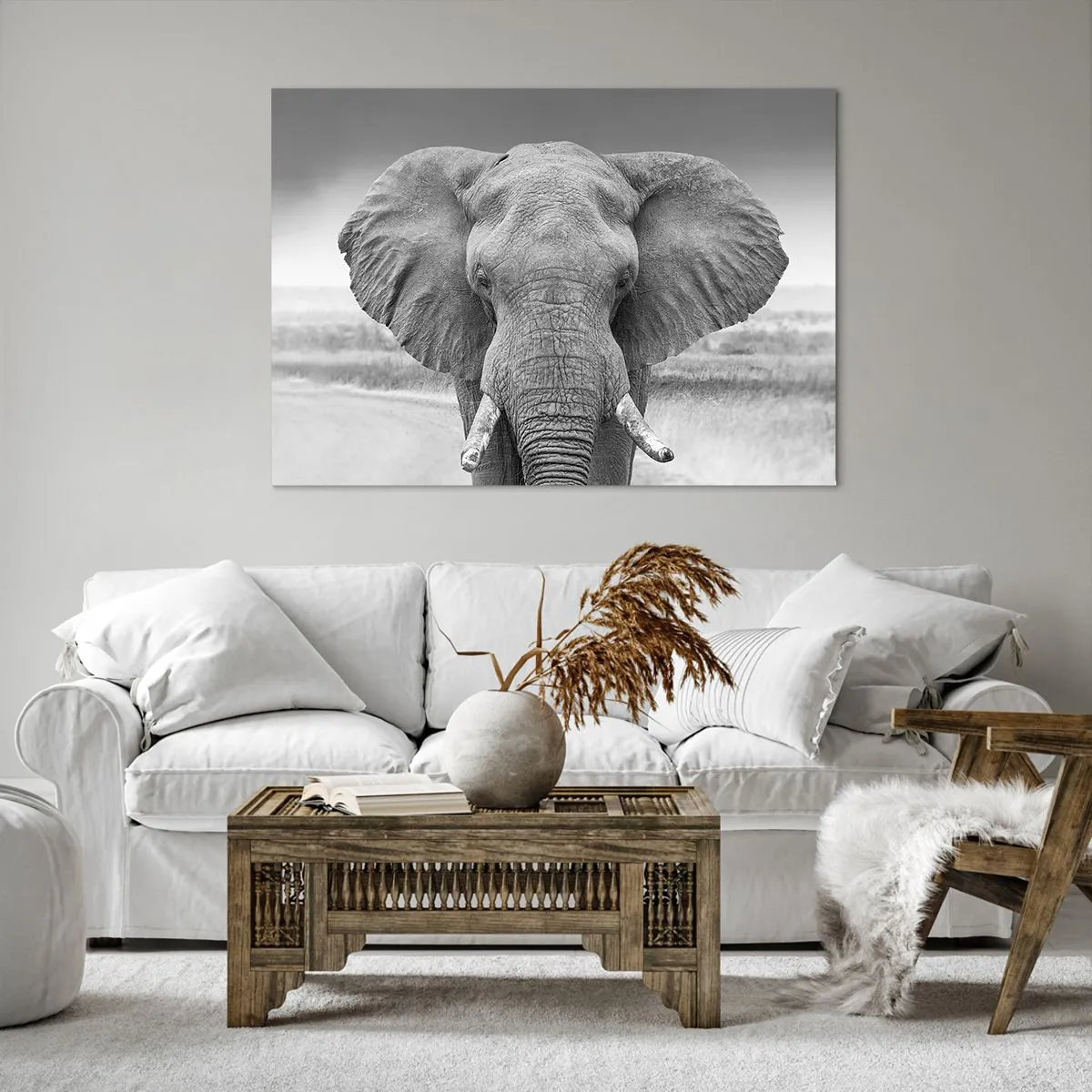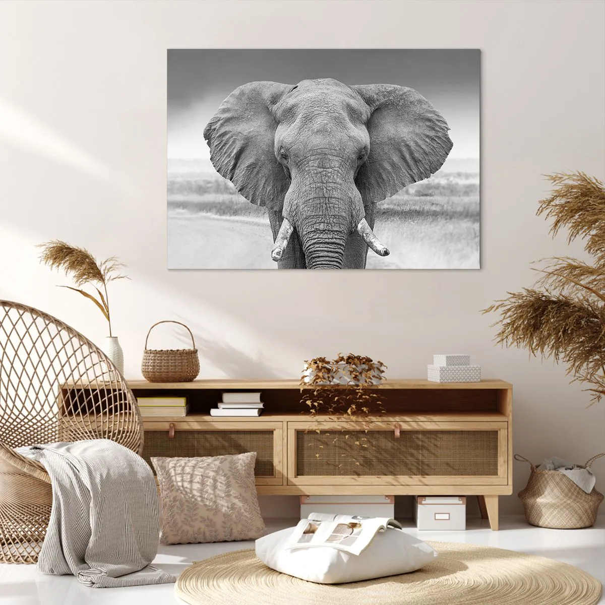 Impression sur toile - Image sur toile - Portrait d'un éléphant en noir et blanc - 100x70cm - Bienvenue dans mon monde - Décoration murale moderne pour le salon et la chambre ARTTOR
