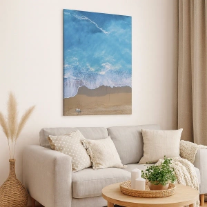 Impression sur toile - Image sur toile - Une vue plongeante sur la plage et les vagues de la mer - 100x70cm - La force du bleu - Décoration murale moderne pour le salon et la chambre ARTTOR