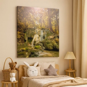 • Ce tableau représente une cascade forestière entourée de verdure et illuminée par la lumière du soleil. Idéal pour les intérieurs inspirés par la nature et la tranquillité. Dimensions : 70 x 50 cm.