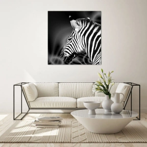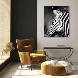 • Ce tableau représente le profil d'un zèbre dans une esthétique noir et blanc, mettant en valeur ses rayures contrastées. Une décoration intérieure idéale dans un style moderne et minimaliste.
