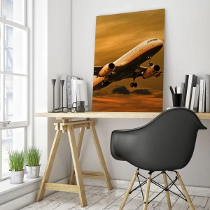 Ce tableau paysage 70x50 cm a été réalisé grâce à une technologie moderne d'impression sur verre. Chaque détail, des nuances subtiles des nuages aux contours expressifs de l'avion, est ainsi parfaitement visible. C'est un excellent choix de décoration murale pour un bureau ou une maison moderne, apportant dynamisme et caractère à l'espace.