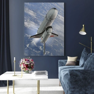 Impression sur verre - Image sur verre - Une fusée spatiale s'élevant devant la Terre en arrière-plan - 80x120cm - Ascension cosmique - Décoration murale moderne pour le salon et la chambre ARTTOR