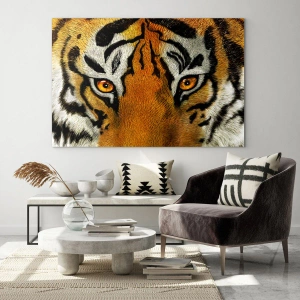 Impression sur verre - Image sur verre - Portrait en gros plan d'un tigre au regard intense - 140x50cm - Terrible et beau - Décoration murale moderne pour le salon et la chambre ARTTOR