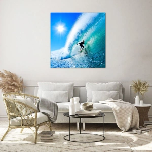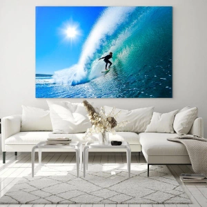 Impression sur verre - Image sur verre - Surfeur sur une vague par une journée ensoleillée - 120x80cm - A travers le grand ciel bleu - Décoration murale moderne pour le salon et la chambre ARTTOR