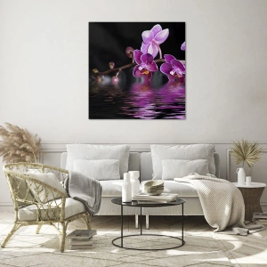 Impression sur verre - Image sur verre - Reflet lilas de la beauté - 90x30 cm