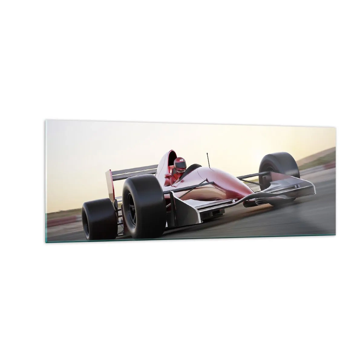 Impression sur verre - Image sur verre - Une voiture de Formule 1 rouge sur une piste de course en conduisant - 140x50cm - Toujours gagnant - Décoration murale moderne pour le salon et la chambre ARTTOR