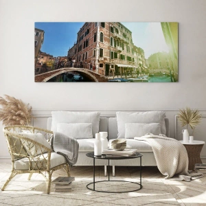 Impression sur verre - Image sur verre - Pont et canal de Venise avec une architecture historique - 140x50cm - Venise - Amore Moi - Décoration murale moderne pour le salon et la chambre ARTTOR
