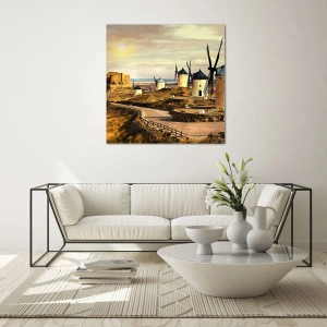 Impression sur verre - Image sur verre - Don Quichotte est sur le point d'arriver - 60x60 cm