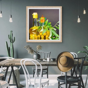 Affiche dans un chêne clair - Poster - Nature morte aux olives et à l'huile d'olive - 50x70 cm