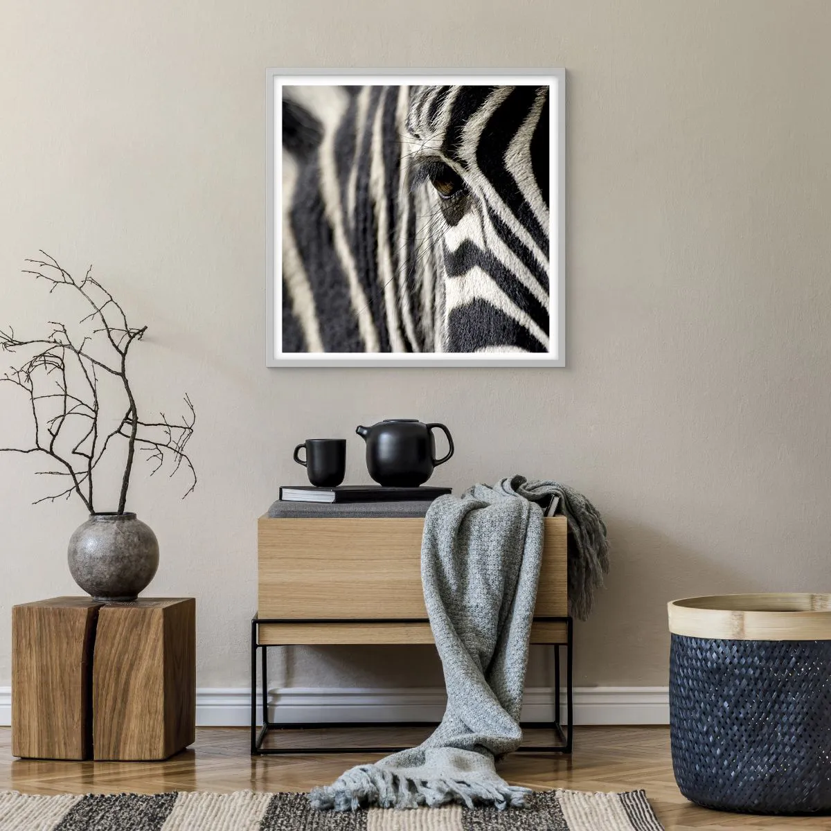 Affiche dans un cadre blanc - Poster - Portrait en rayure - 60x60 cm