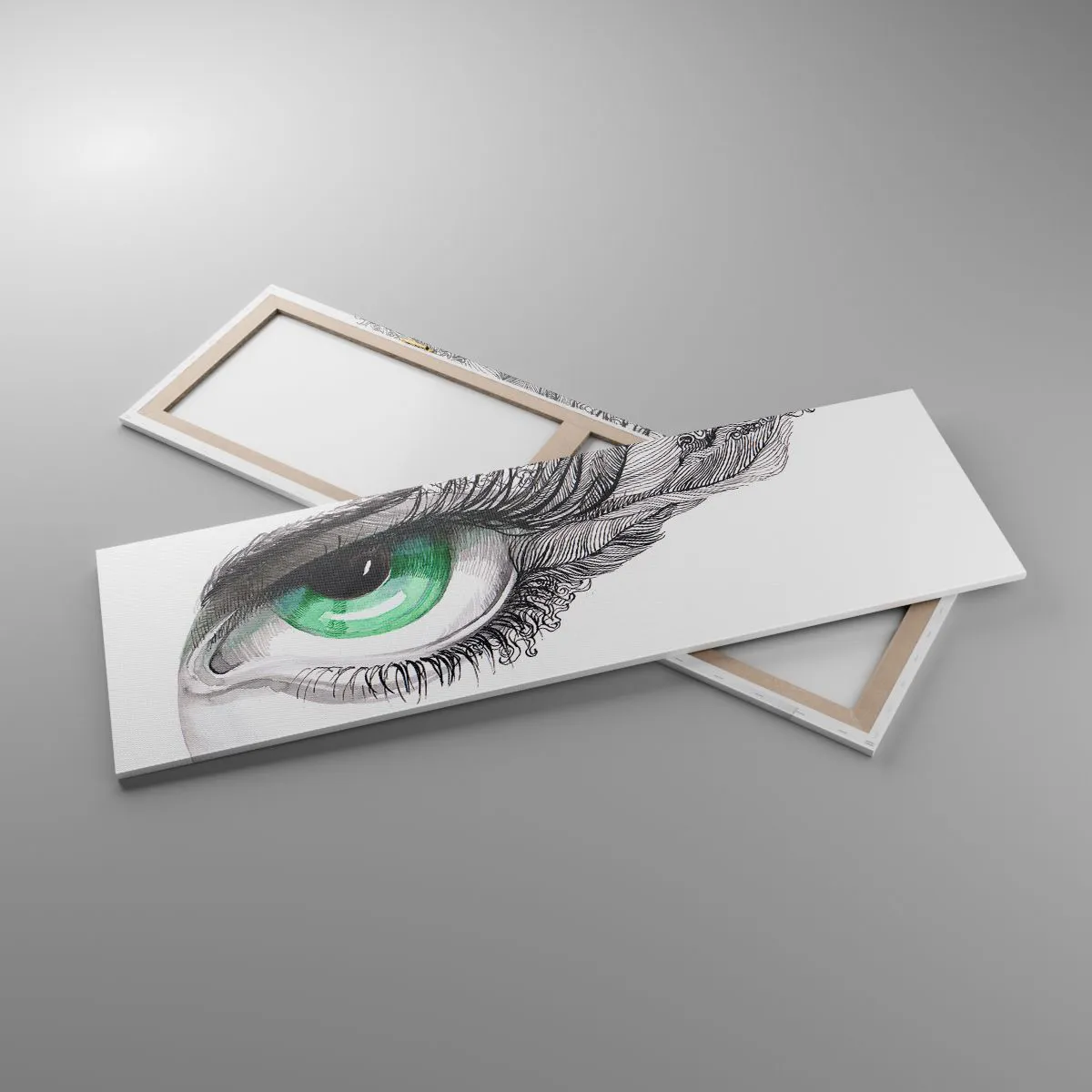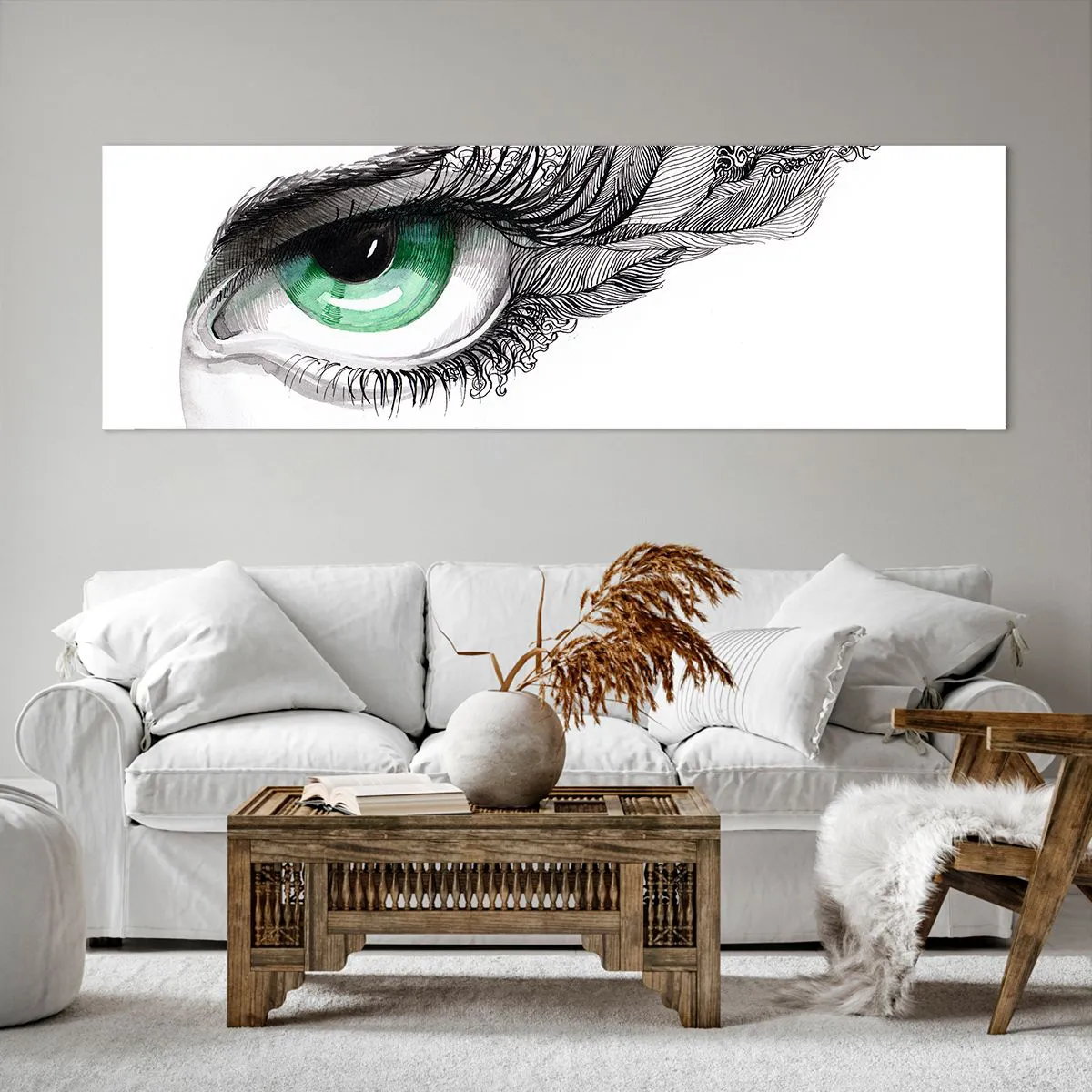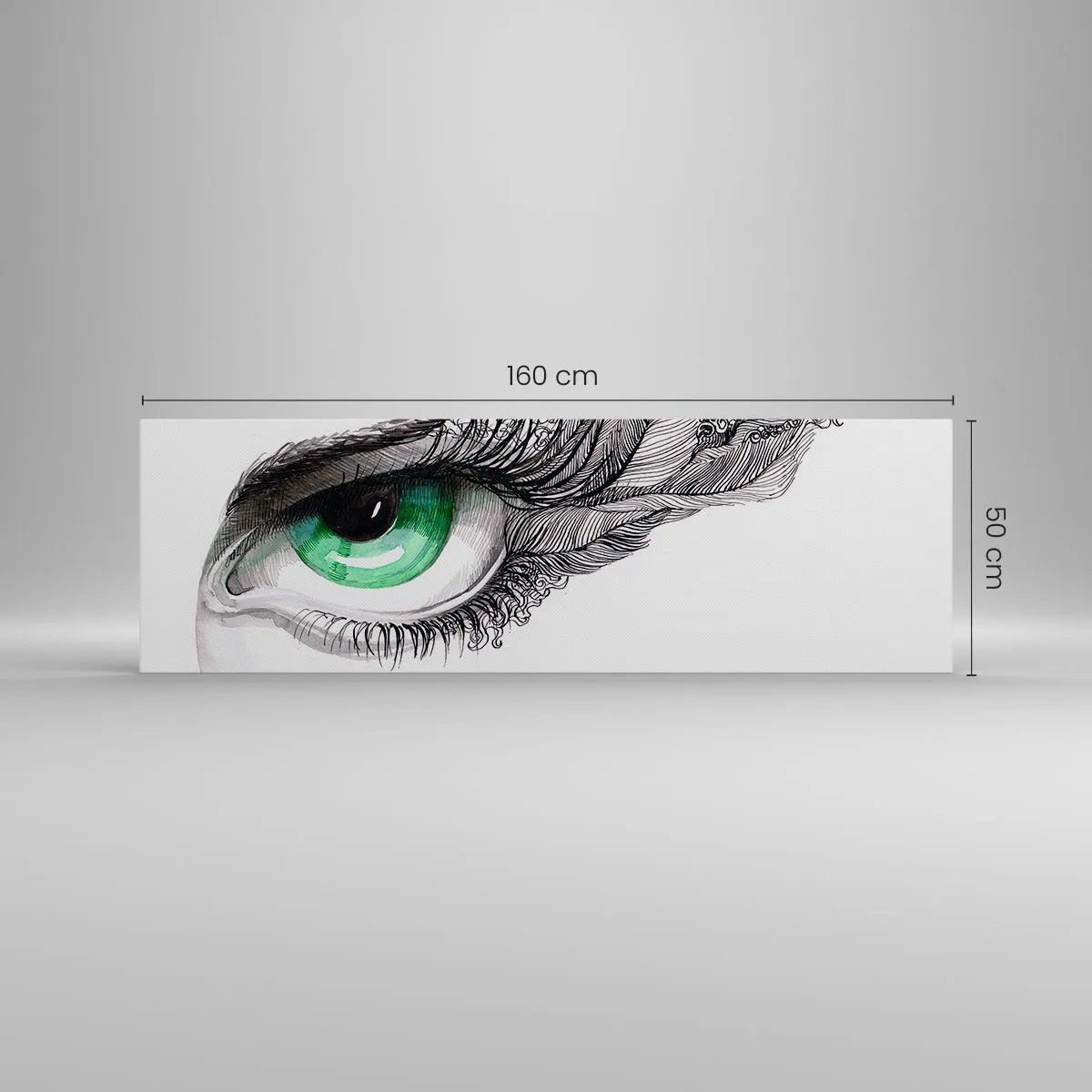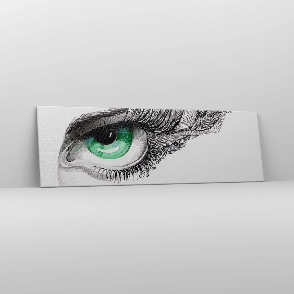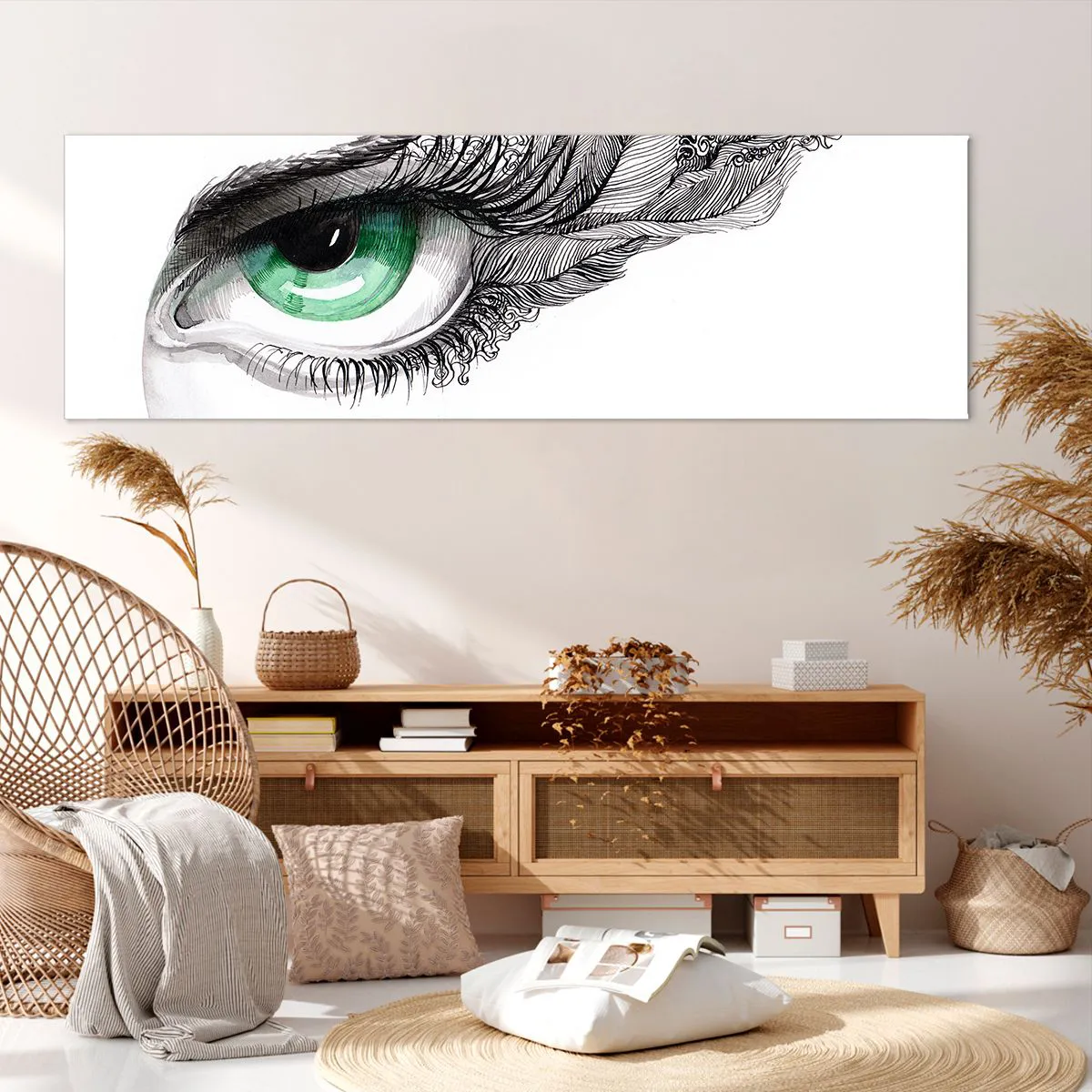 Impression sur toile - Image sur toile - Œil artistique avec iris vert et détails de dessin - 160x50cm - Belle et prête à l'attaque - Décoration murale moderne pour le salon et la chambre ARTTOR