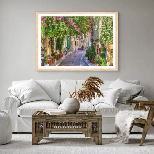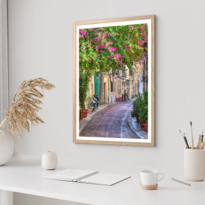 Affiche dans un chêne clair - Poster - Allée fleurie - 61x91 cm