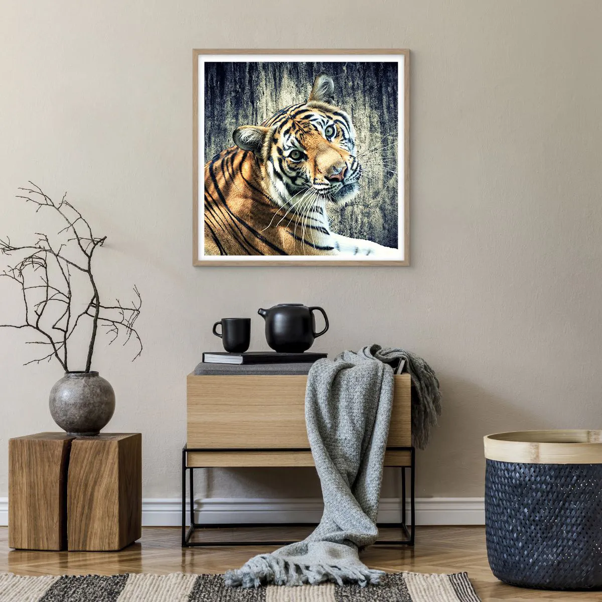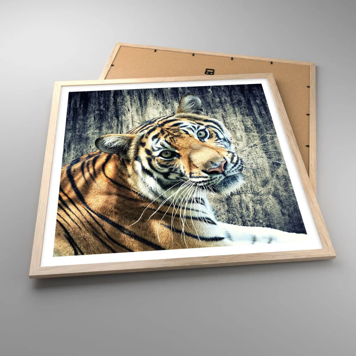Affiche dans un chêne clair - Poster - Portrait dans les flots de lumière - 60x60 cm