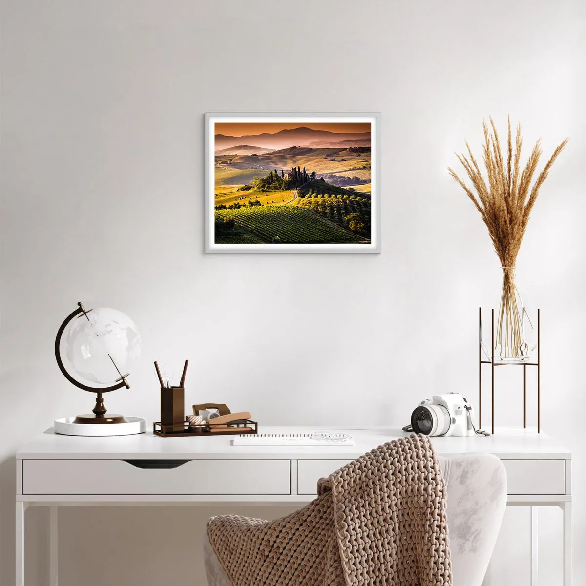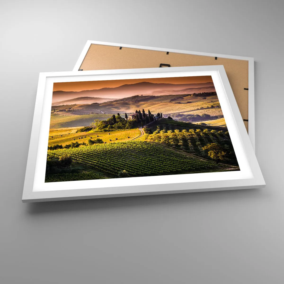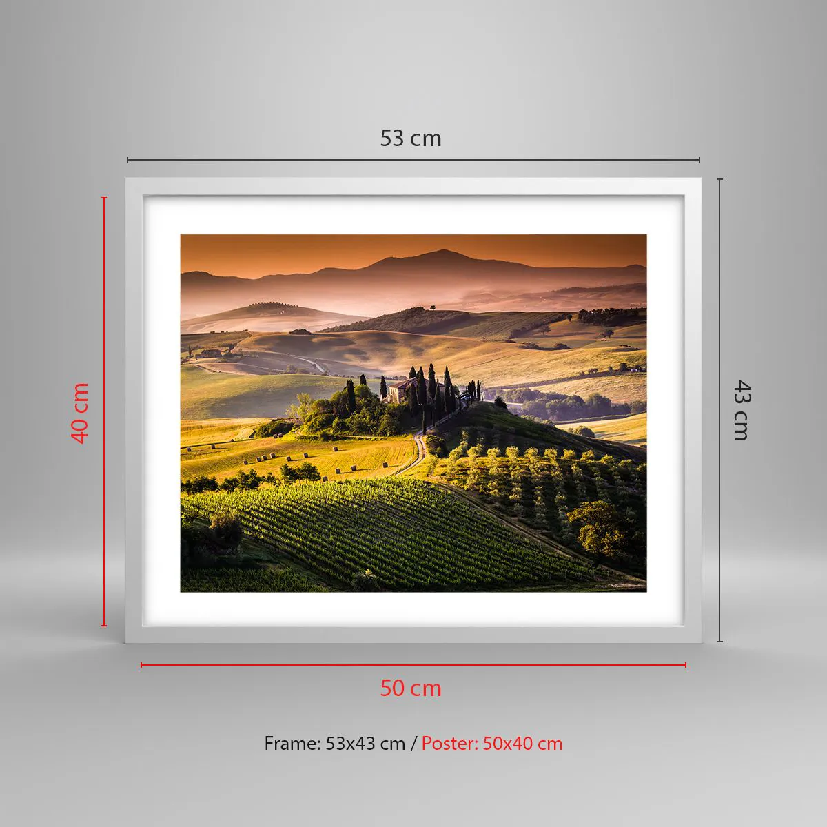 Affiche dans un cadre blanc - Poster - Arcadie - le paysage toscan - 50x40 cm