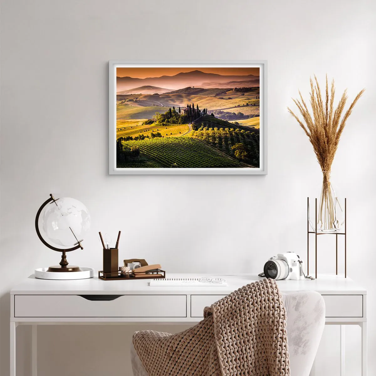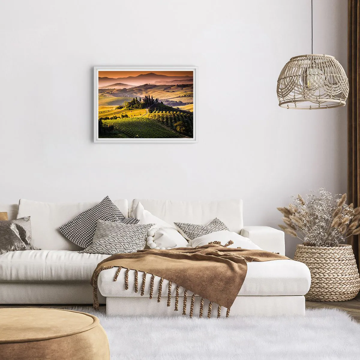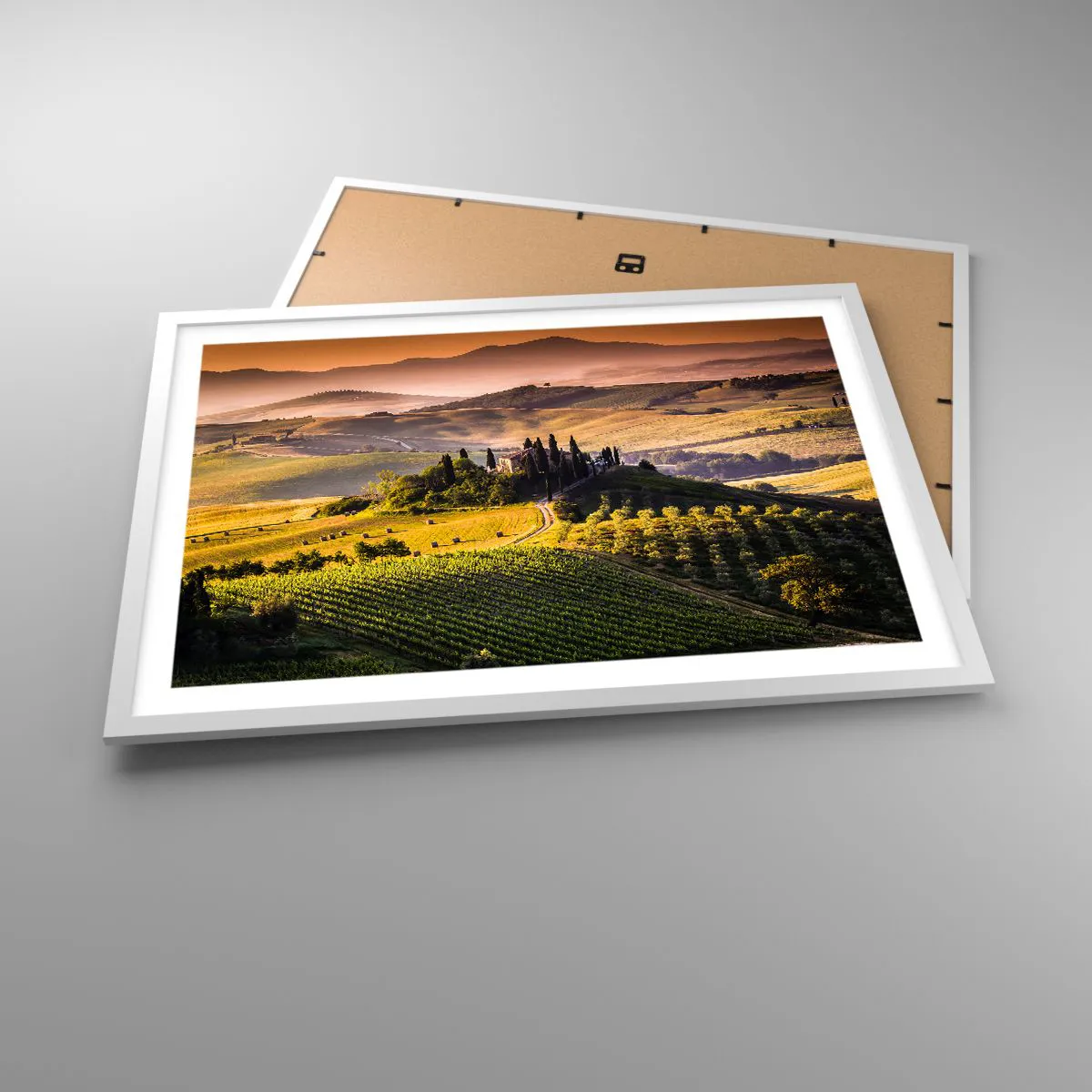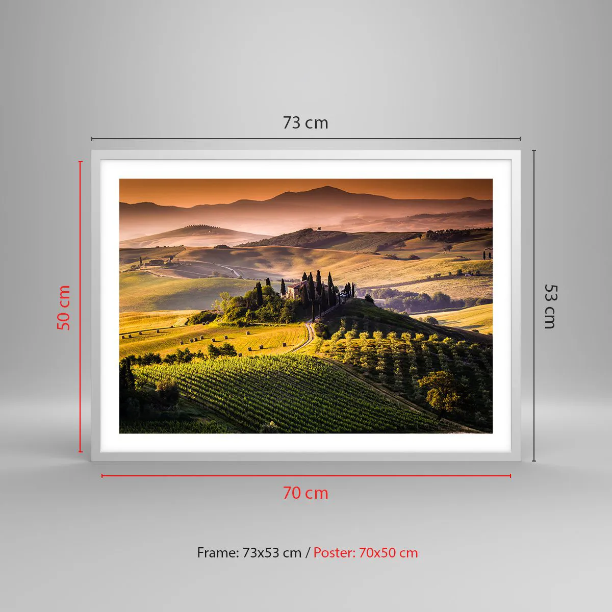 Affiche dans un cadre blanc - Poster - Arcadie - le paysage toscan - 70x50 cm