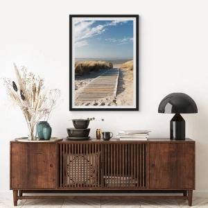 Affiche dans un cadre noir - Poster - Derrière la dune, dans le bruissement de l'herbe - 91x61 cm