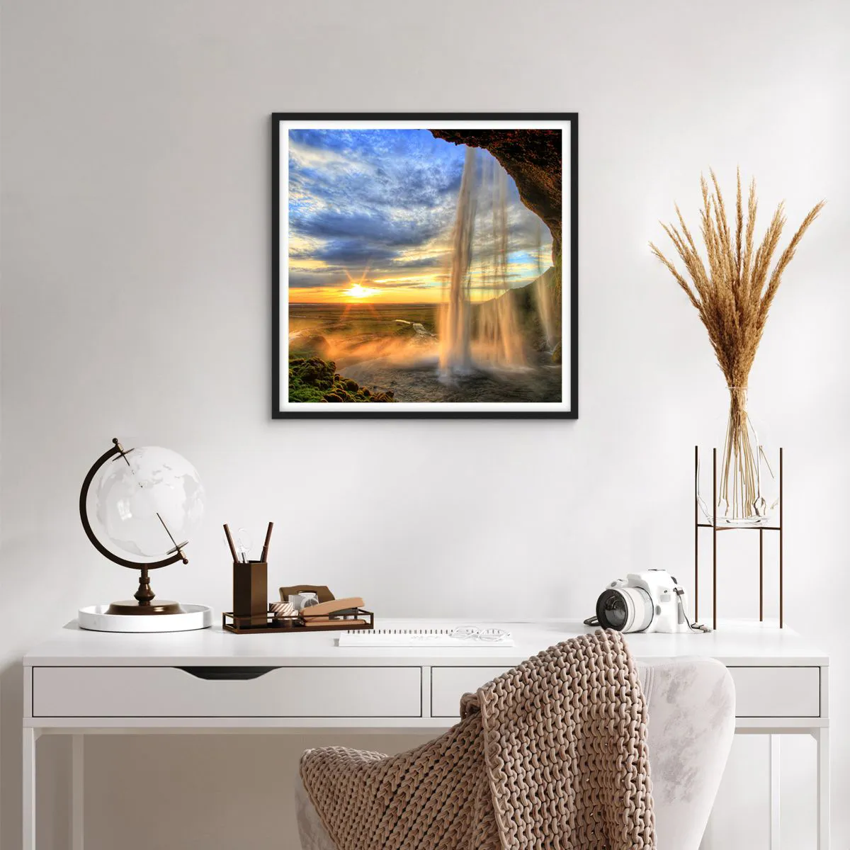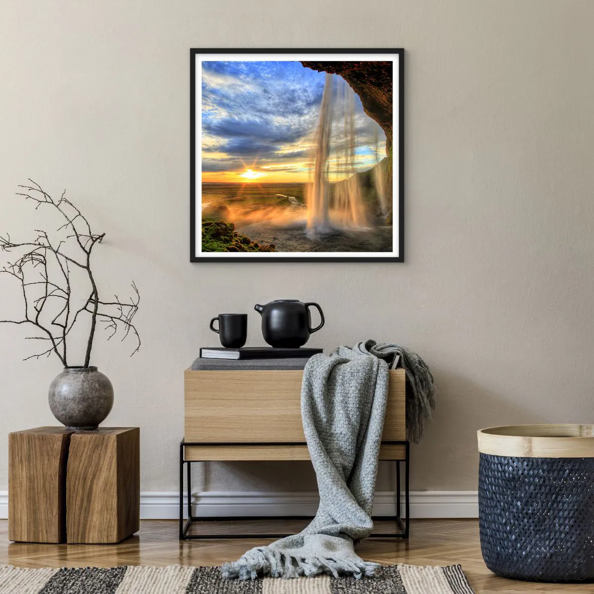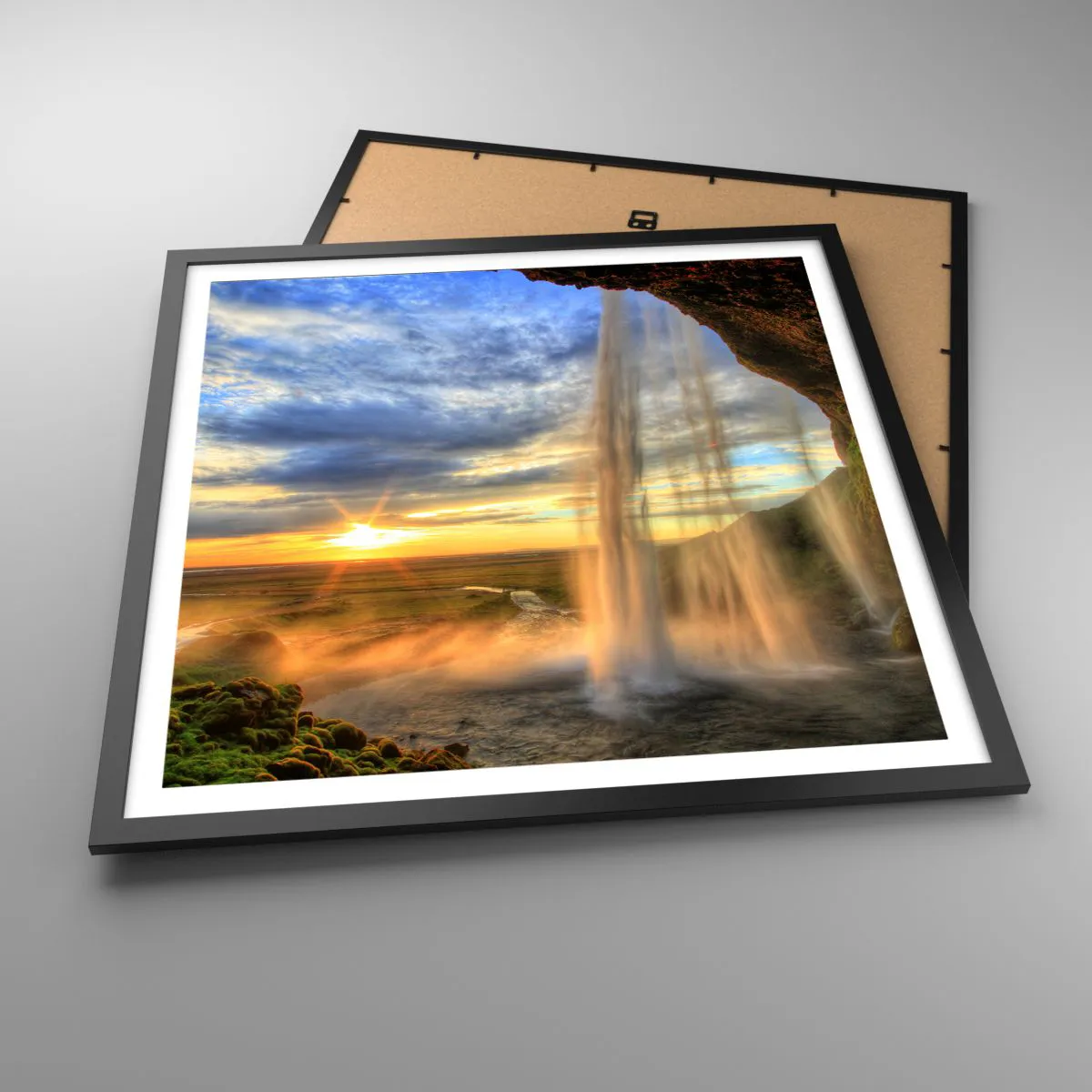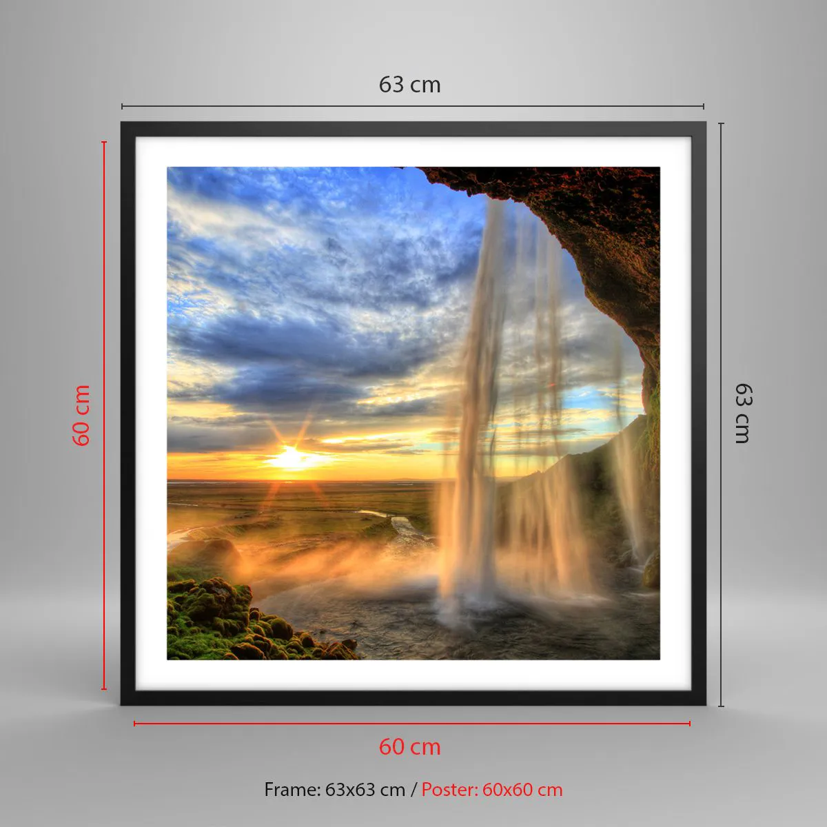 Affiche dans un cadre noir - Poster - Le monde derrière un voile de gouttes - 60x60 cm
