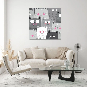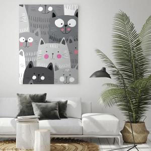 Impression sur verre - Image sur verre - Un motif amusant avec des chats dans des tons de gris - 70x100cm - Le monde des chats - Décoration murale moderne pour le salon et la chambre ARTTOR