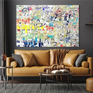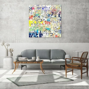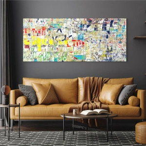 Impression sur verre - Image sur verre - Une composition abstraite avec un mélange de couleurs et d'inscriptions. - 50x70cm - Ca fait juste plaisir aux yeux - Décoration murale moderne pour le salon et la chambre ARTTOR