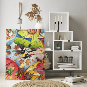 Impression sur verre - Image sur verre - Une illustration colorée d'une aventure spatiale pour les enfants - 120x80cm - Grande aventure spatiale - Décoration murale moderne pour le salon et la chambre ARTTOR