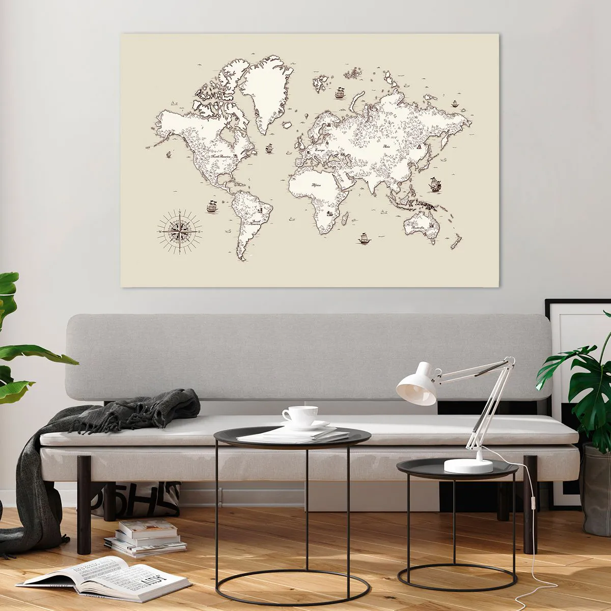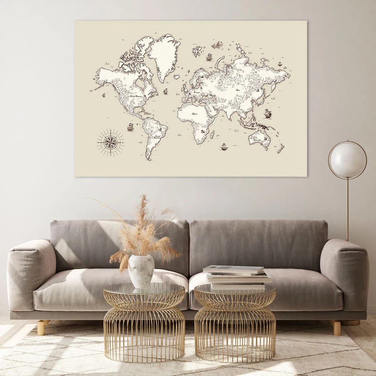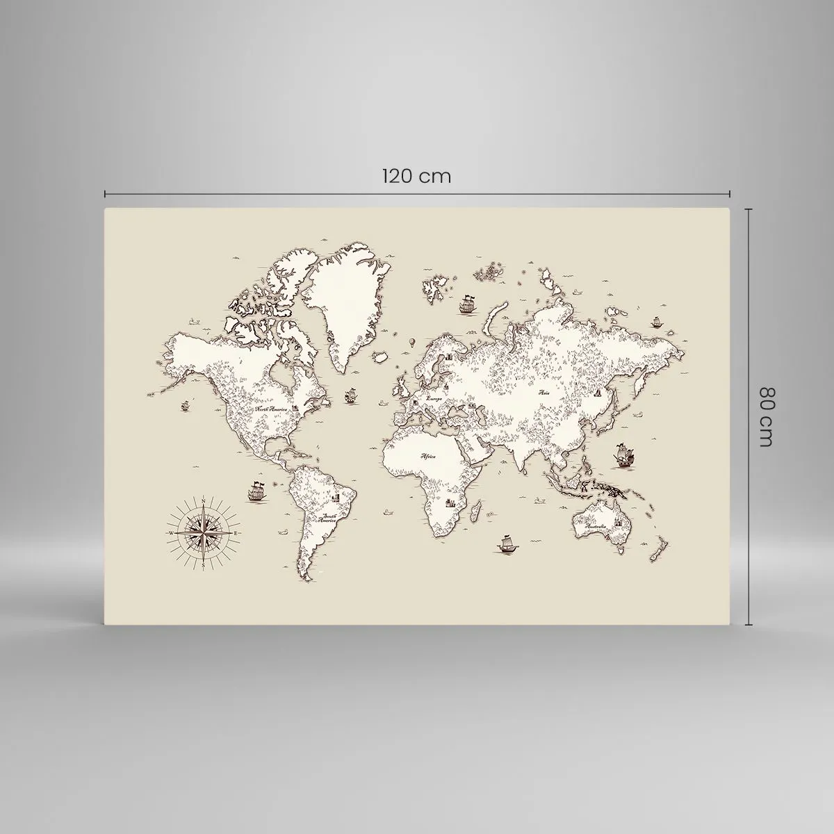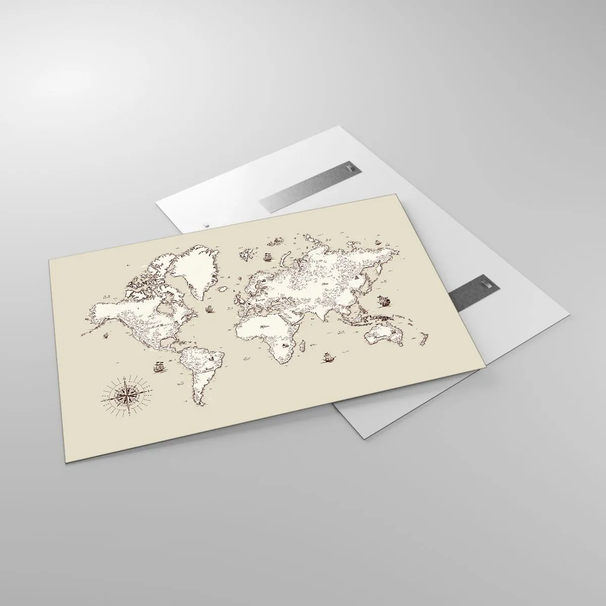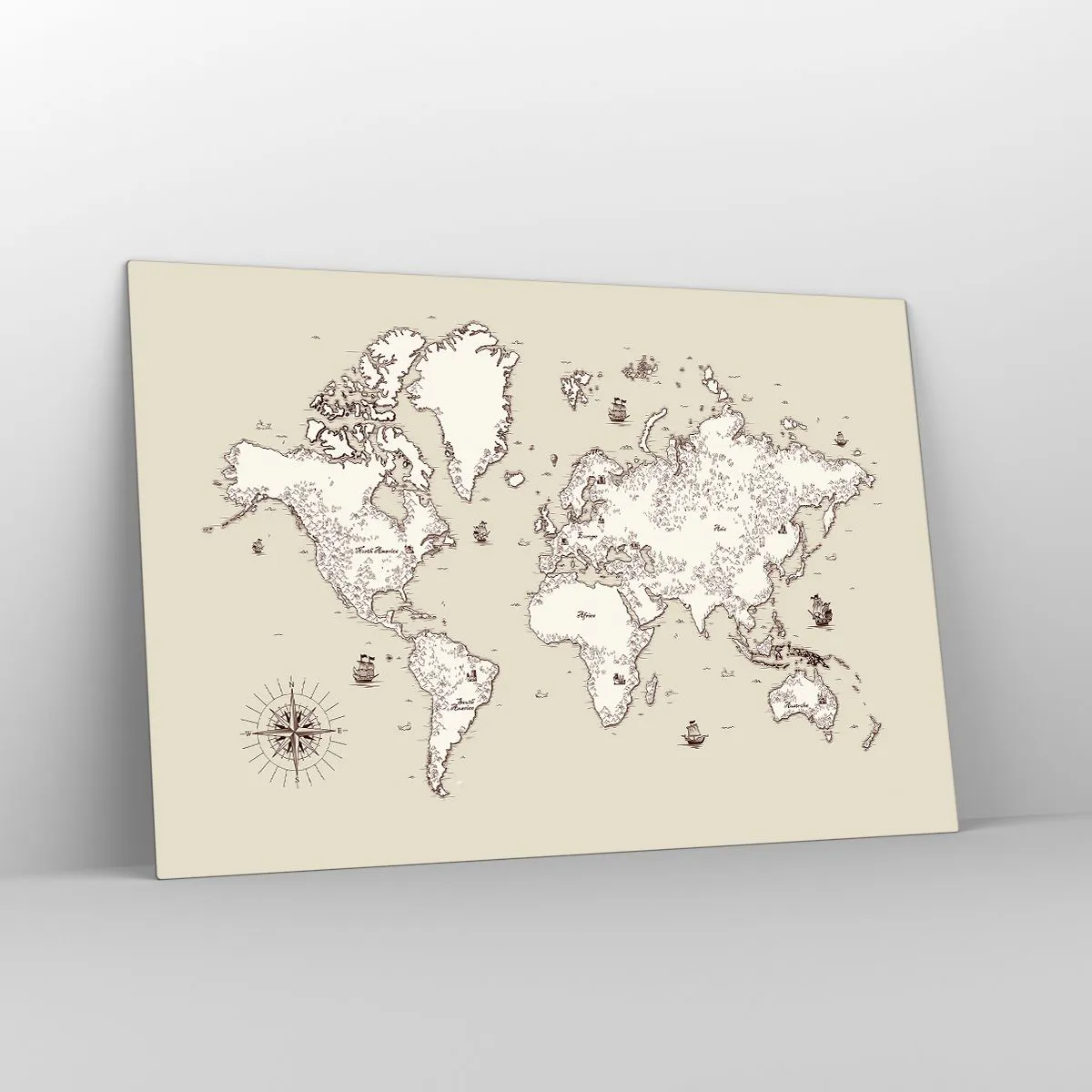 Impression sur verre - Image sur verre - Une carte du monde stylisée dans une version classique - 120x80cm - Voyage autour du monde - Décoration murale moderne pour le salon et la chambre ARTTOR