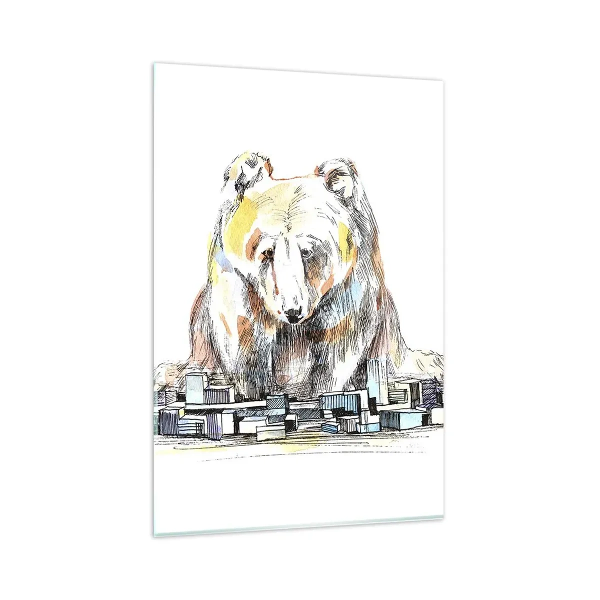 Impression sur verre - Image sur verre - Illustration d'un ours avec des détails et des blocs colorés - 80x120cm - Comment peut-on vivre ainsi ? - Décoration murale moderne pour le salon et la chambre ARTTOR