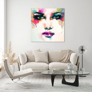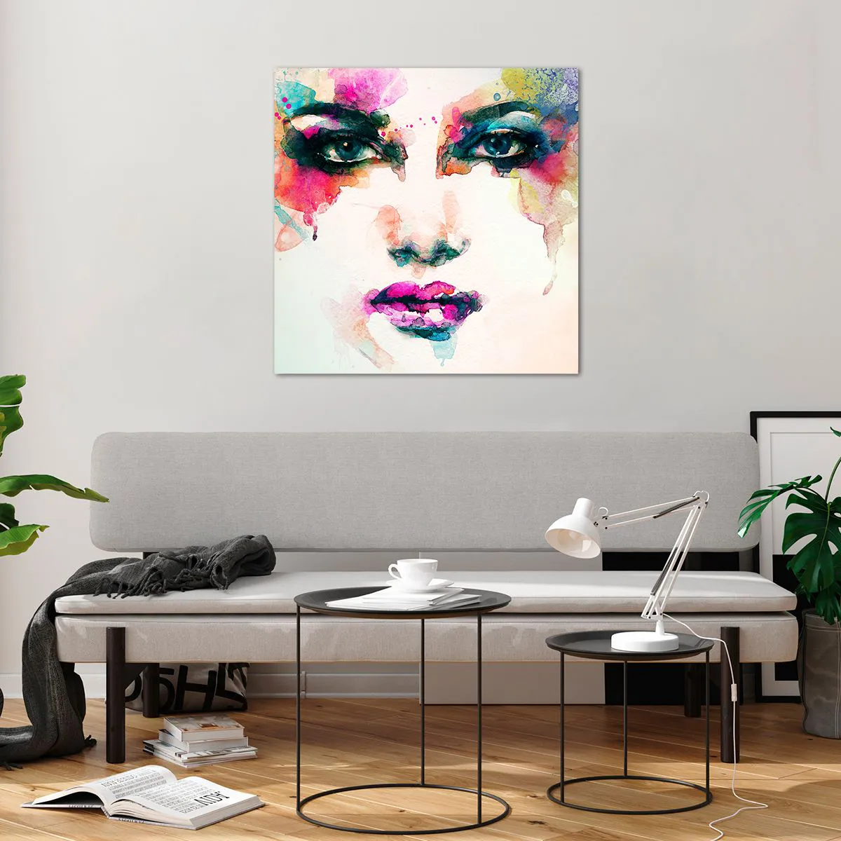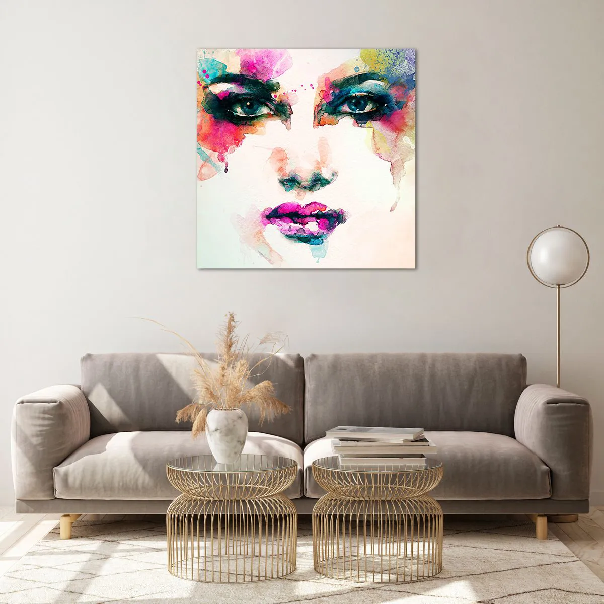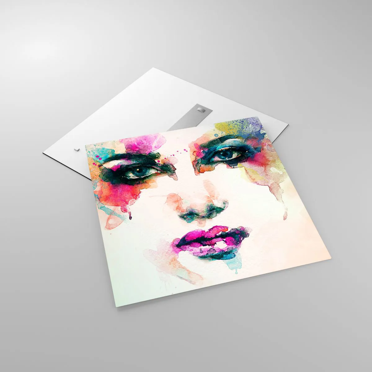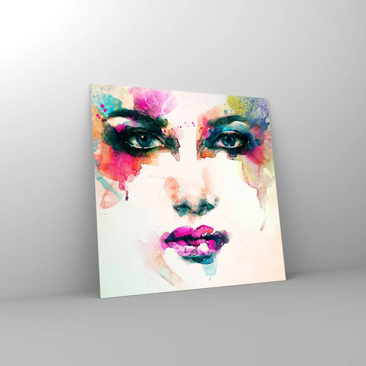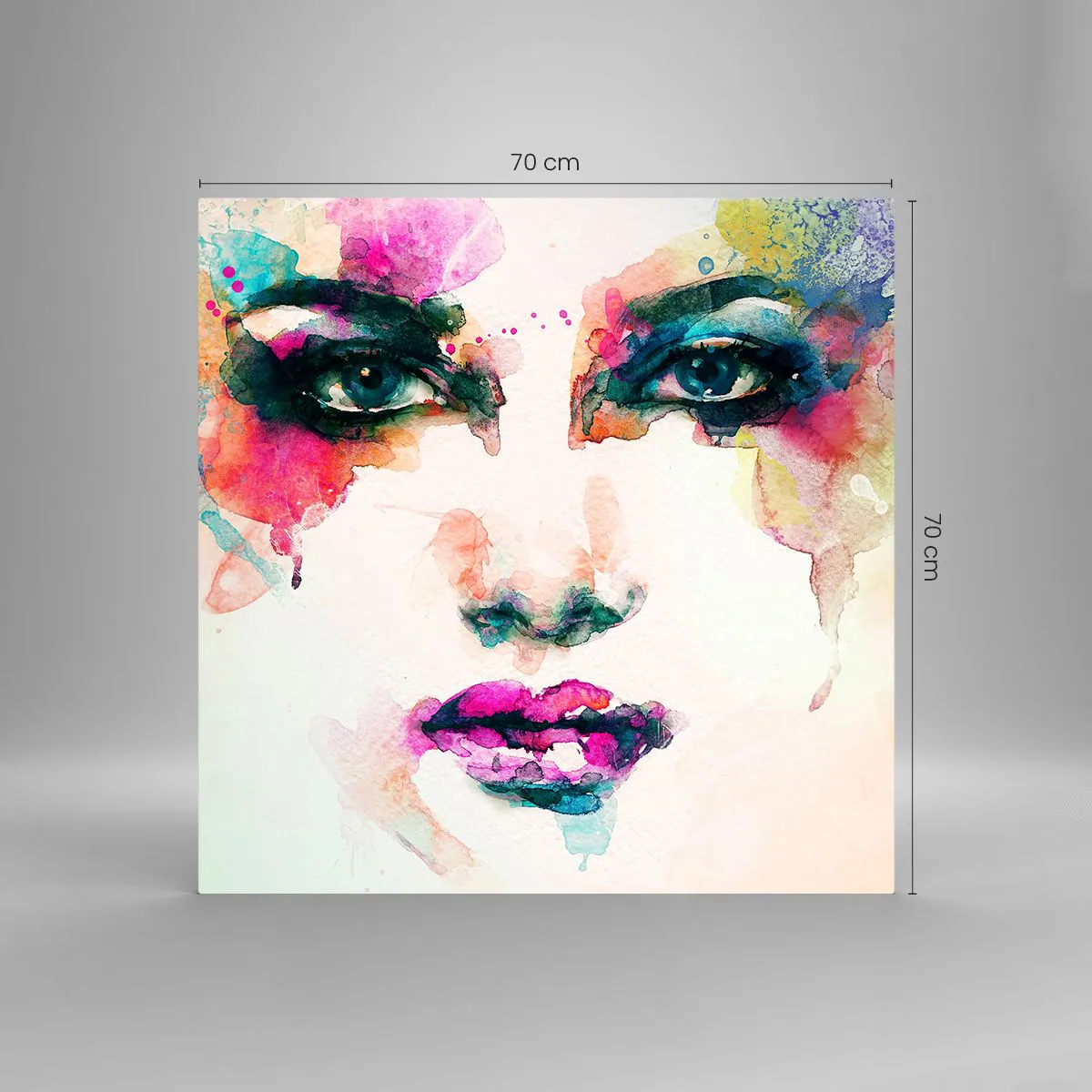Impression sur verre - Image sur verre - Un portrait peint avec un arc-en-ciel - 70x70 cm