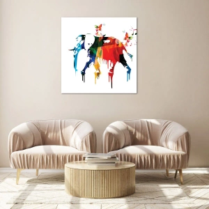 La peinture sur verre est faite sur un verre de 4 mm d'épaisseur. Les bords du verre ont une arête trapézoïdale mate. La tableau est sûr à l'utilisation et prêt à être accroché - il a des crochets en métal attachés à l'arrière du cadre et des entretoises en mousse permettant la régulation uniforme de la distance du tableau au mur.